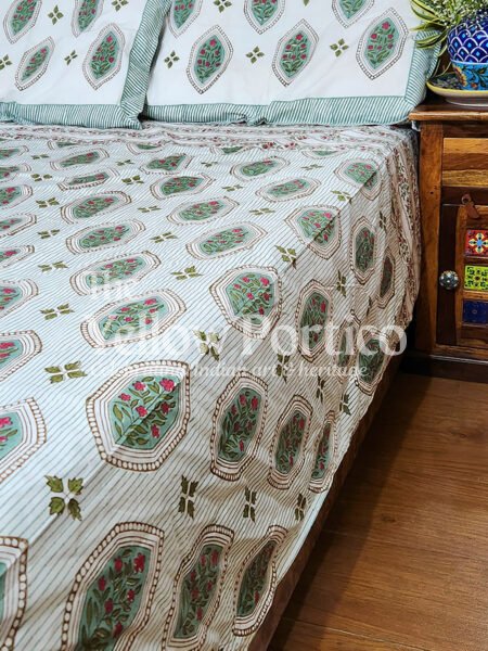 Harit boota Hand Block Printed Bedsheet with Pillow Cover