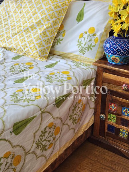 Peela Sadabahar hand block printed Bedsheet with Pillow Cover