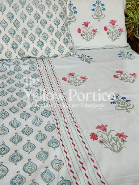 Patal pushpa Hand Block Printed Bedsheet with Pillow Cover