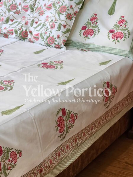 Gulabi Sadabahar hand block printed Bedsheet with Pillow Cover