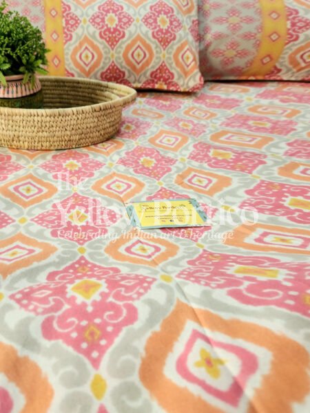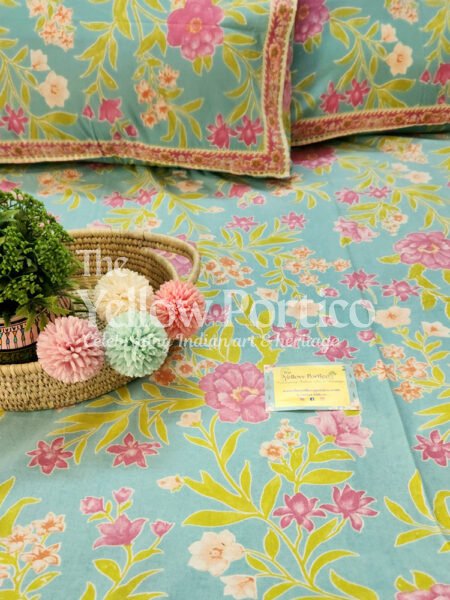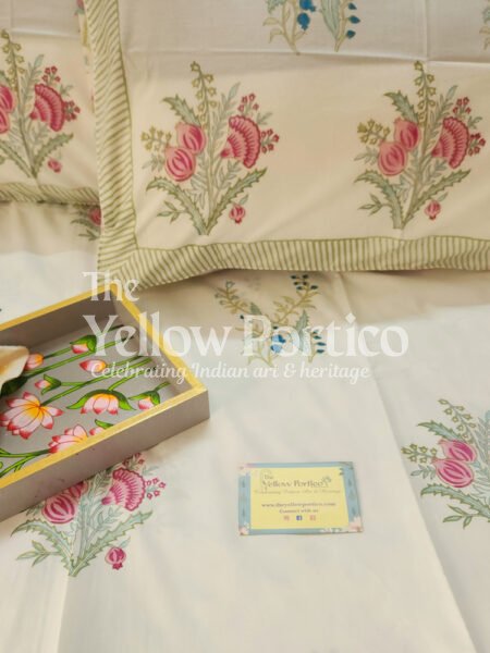 Phoolon ki dali Hand Block Printed Bedsheet With Pillow Cover