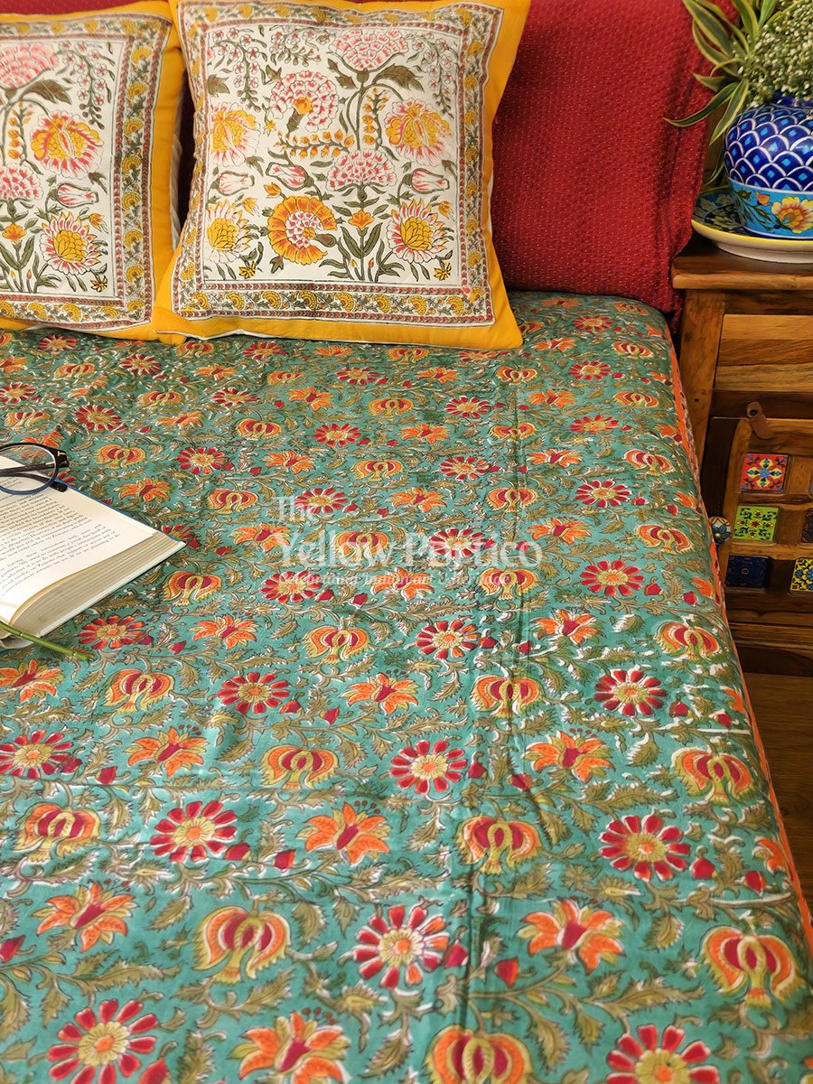 Discover the perfect combination of style and comfort with our reversible dohars. These are crafted with two layers of soft and breathable mulmul cotton, interspersed with a flannel lining in between. The layers are stitched together and beautifully finished with a striped border. With their lightweight and cozy design, these are perfect for both summers and pleasant winters. Embellished with elegant Indian motifs, our beautiful mulmul dohars will effortlessly enhance the décor of your bedroom. Enjoy the year-round versatility with our range of stunning handblock printed dohars.
